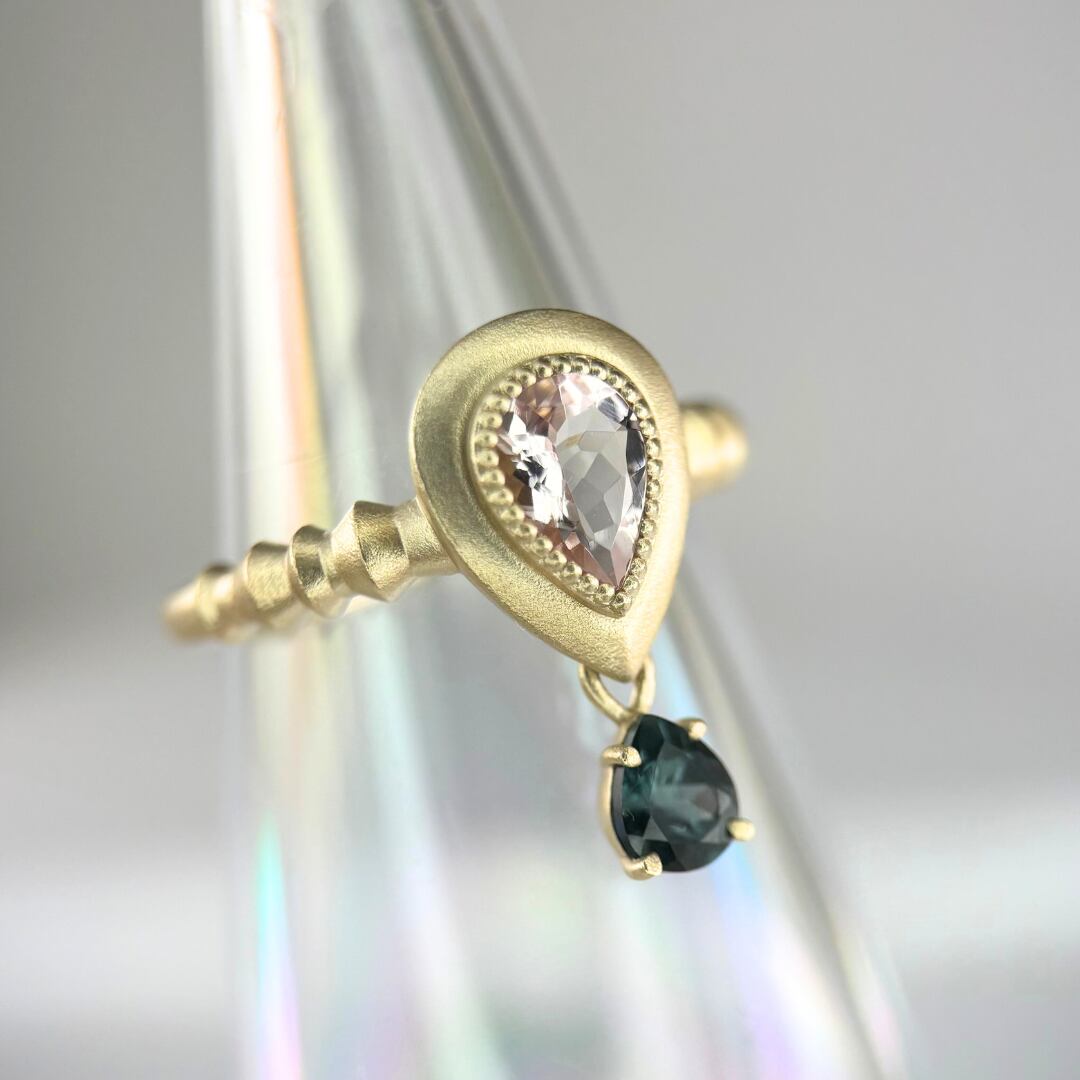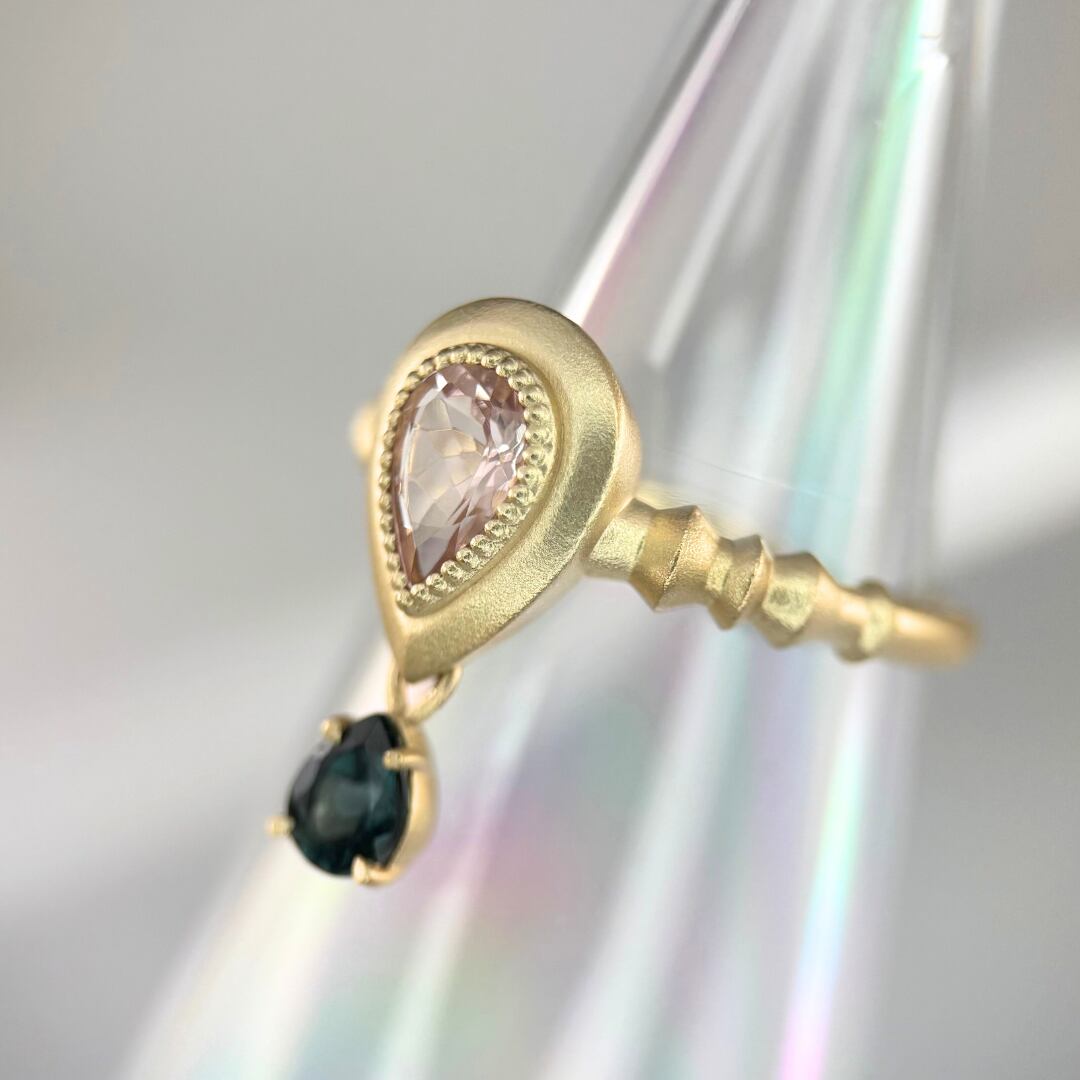 K10YGモルガナイト&トルマリンリング#12ツヤ消し加工【特注品】