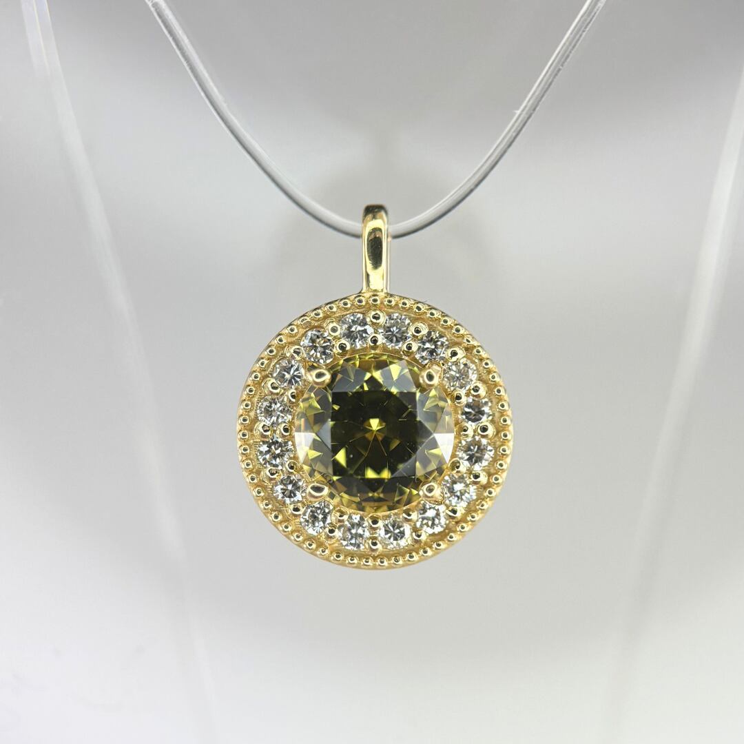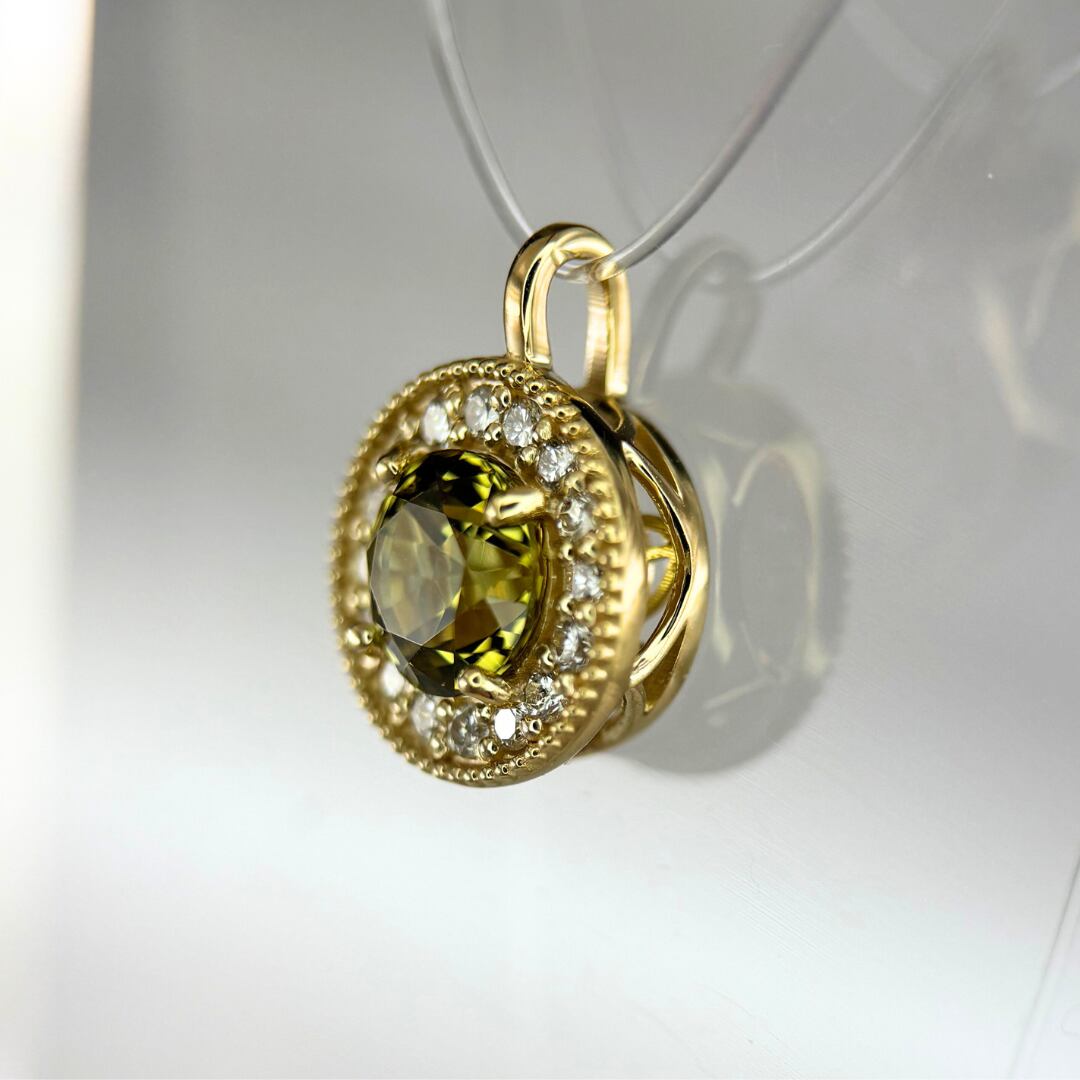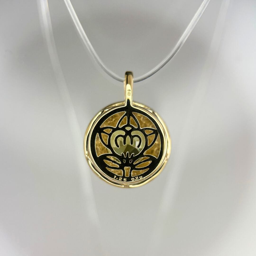 K18YGマリガーネット取り巻きメレ0.2ctペンダント裏デザイン入り【特注品】