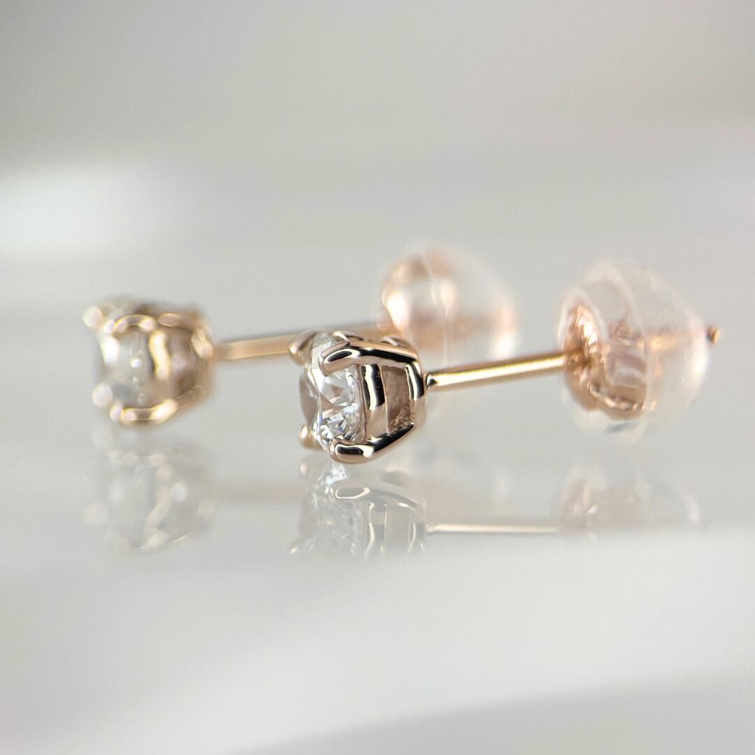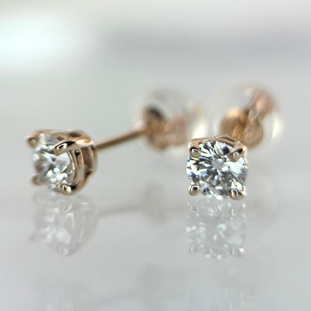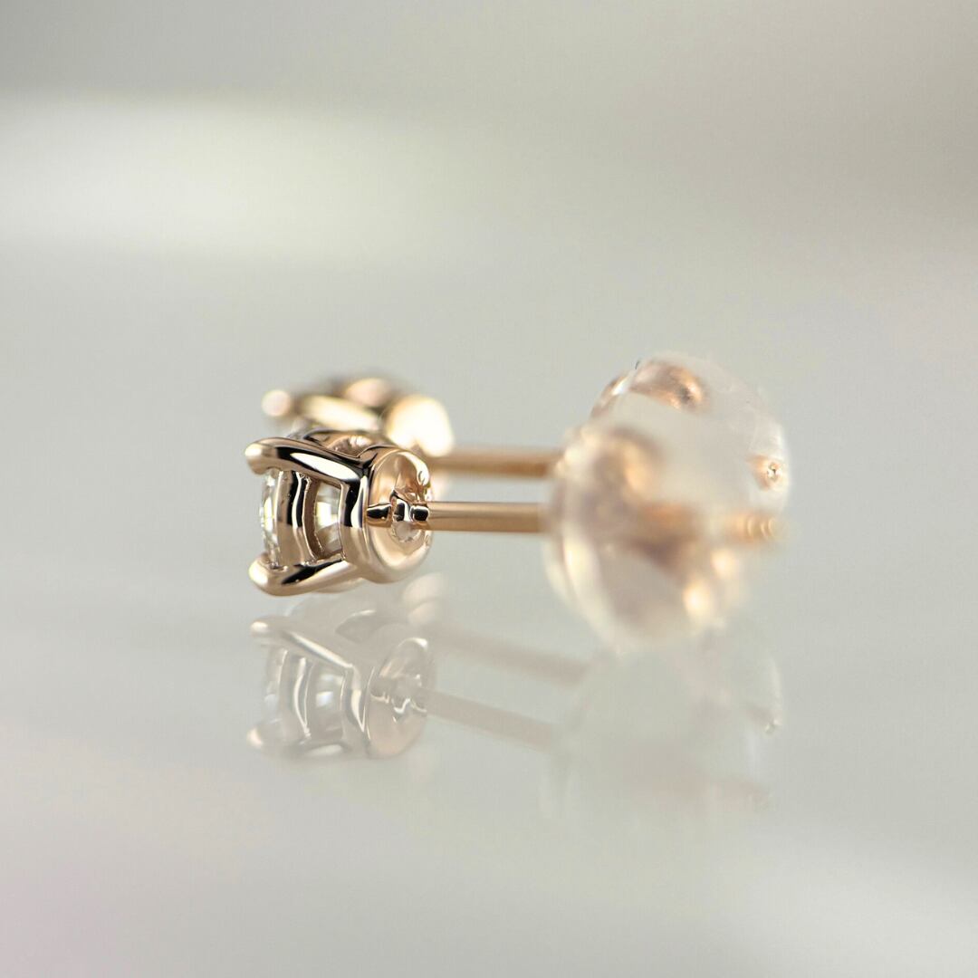 K18ピンクゴールド 3.8mmダイヤピアス 地金キャッチ付き【特注品】