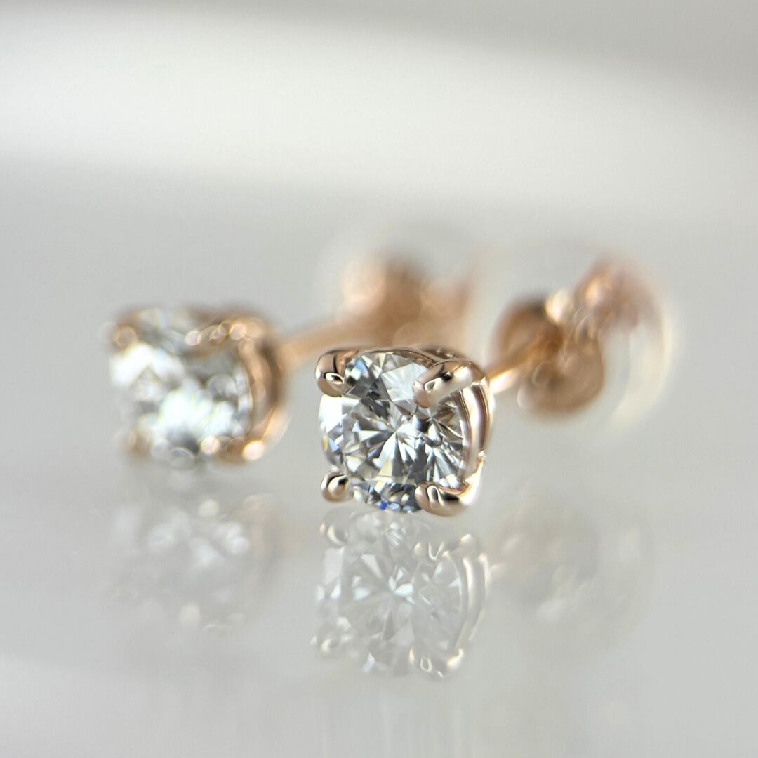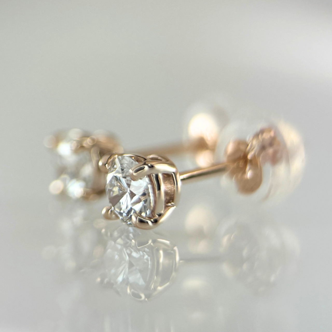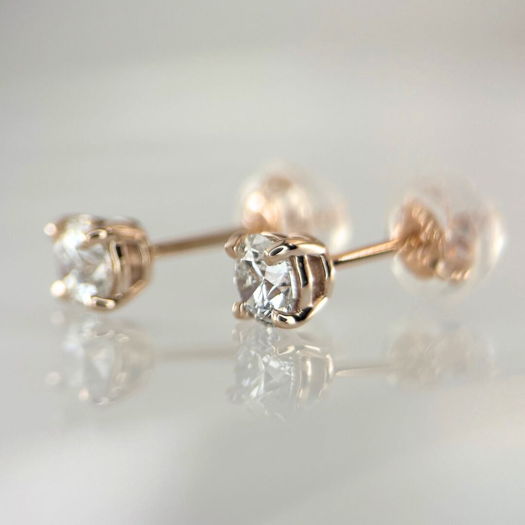 K18ピンクゴールド 3.8mmダイヤピアス 地金キャッチ付き【特注品】