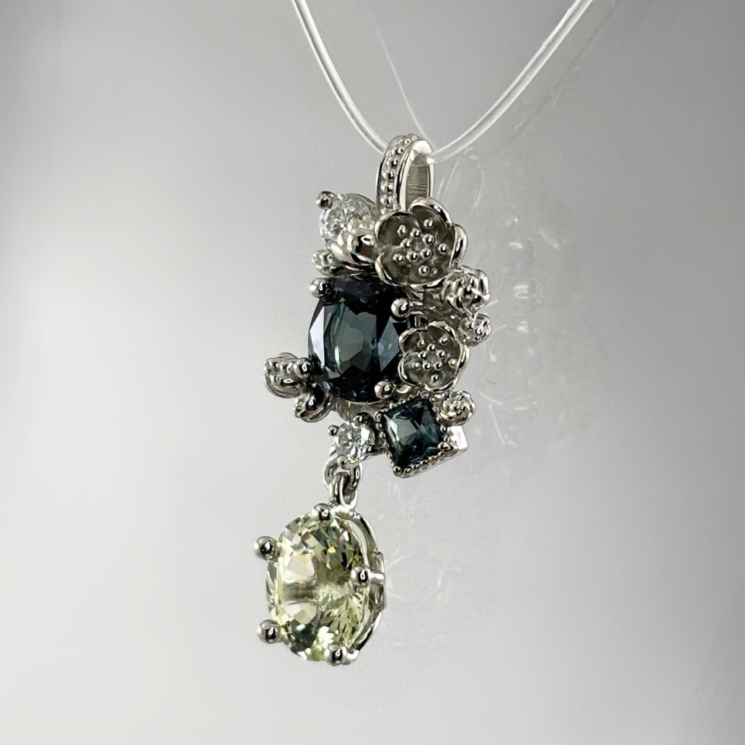 Pt900カラーチェンジガーネット1.06ct 0.113ctペンダントトップメレダイヤ0.132ct【特注品】