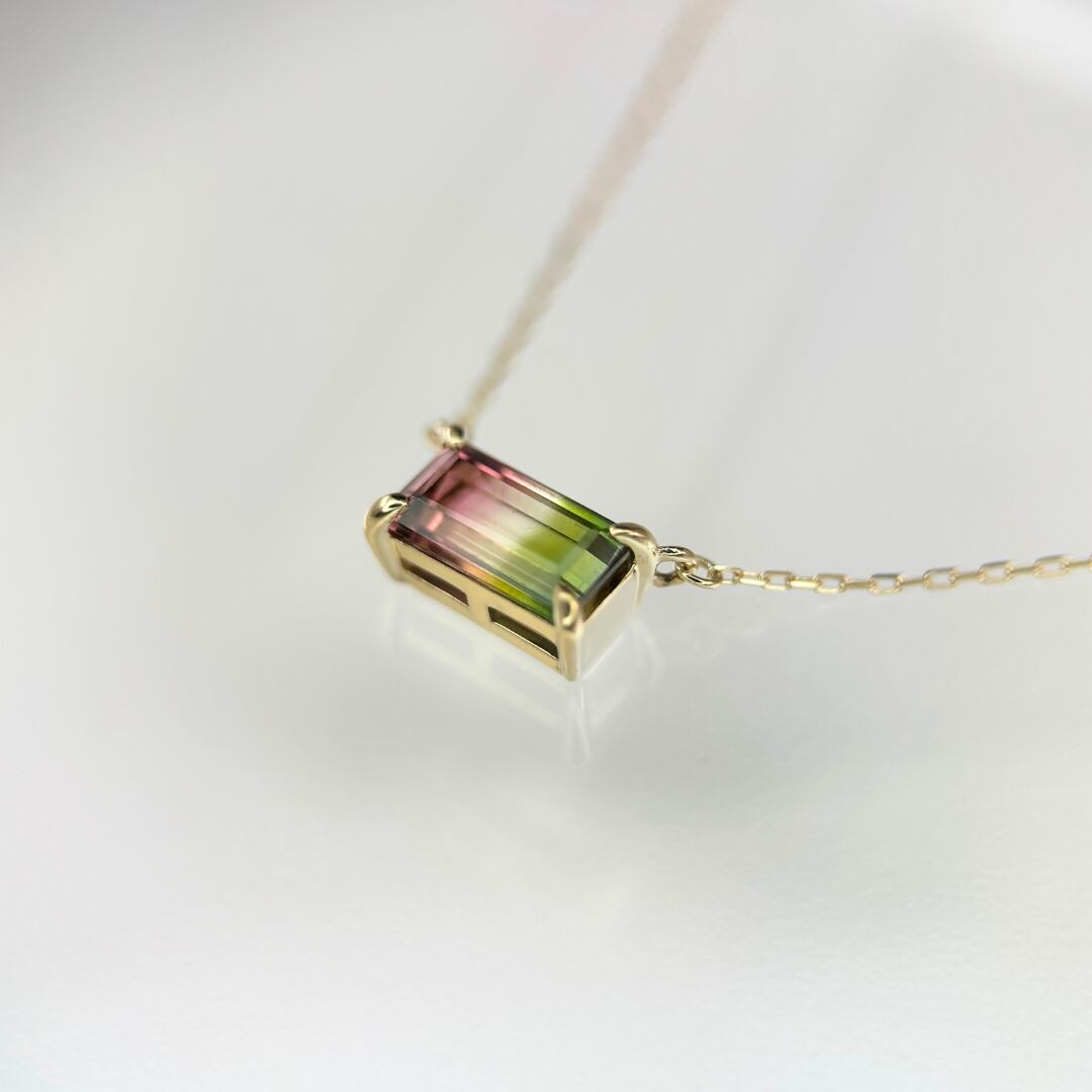 K10バイカラートルマリン0.799ctペンダント40cm角小豆0.2【特注品】