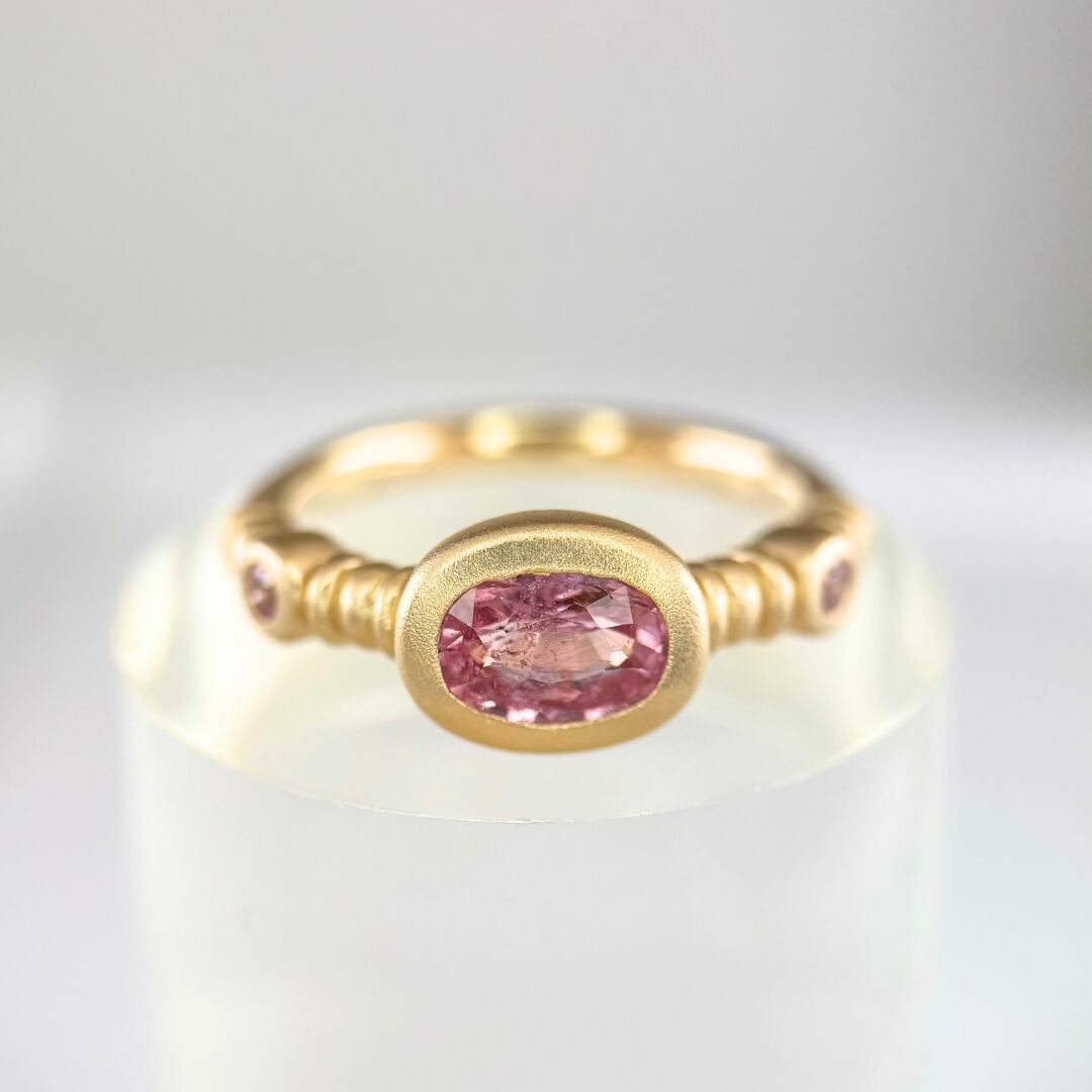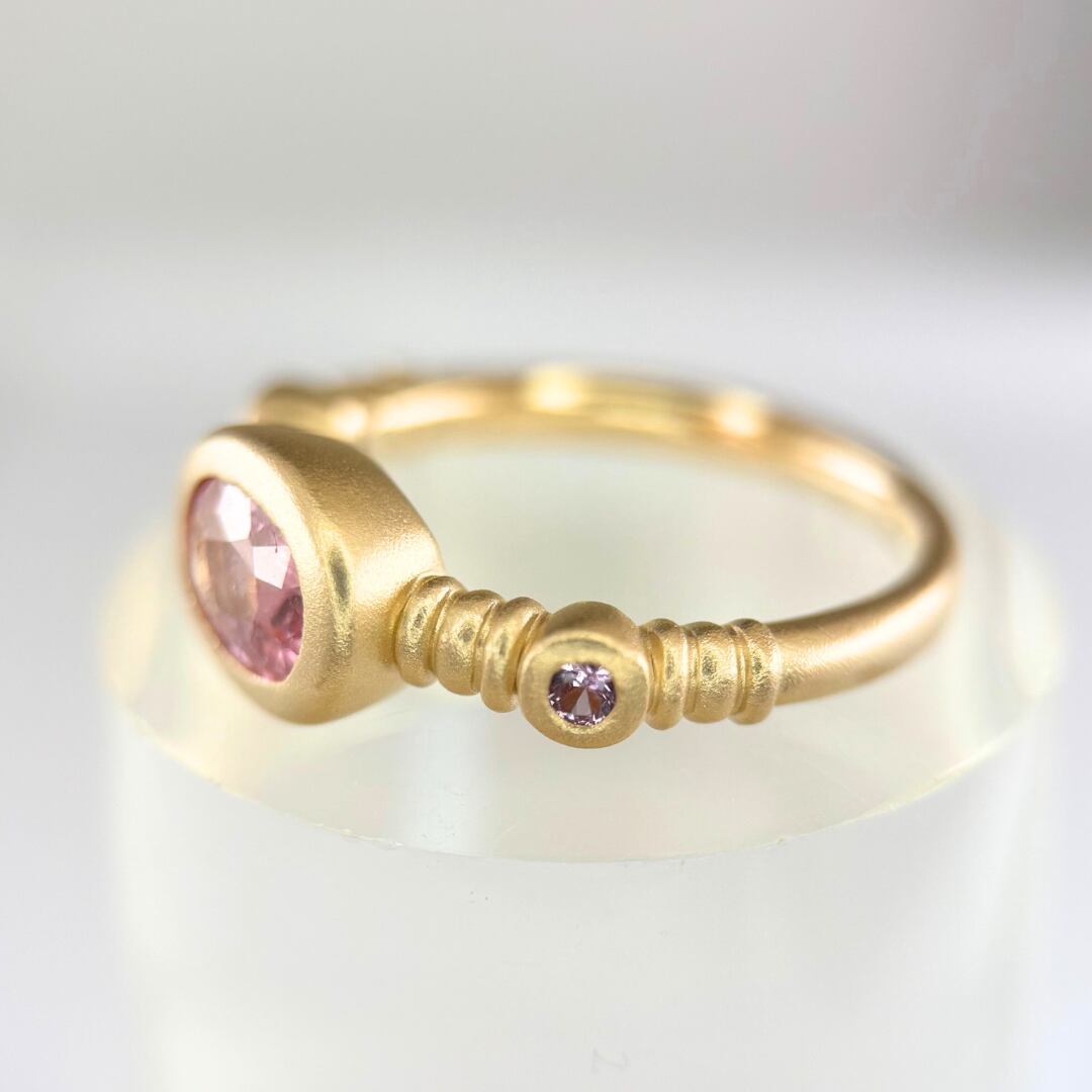 K18(5:5)パパラチアRG#8つや消し加工【特注品】指定刻印&ピンクSF2pc付